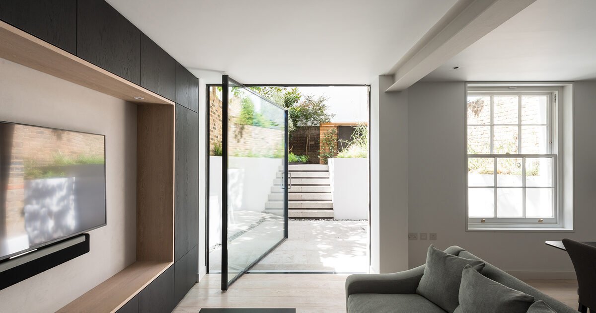 A bold architectural choice, pivot doors rotate on an offset axis and require specialized support to handle weight and wind pressure.
