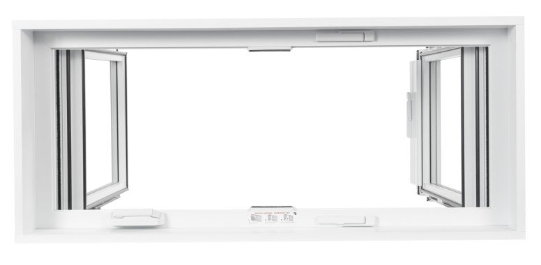 Awning windows are hinged at the top and open outward — great for airflow, even during rain. Hopper windows are hinged at the bottom and open inward, often used in basements for code-compliant egress and ventilation.
